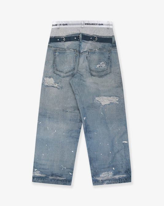 TROMPE-L'ŒIL DENIM PRINTED PANTS - BLUE